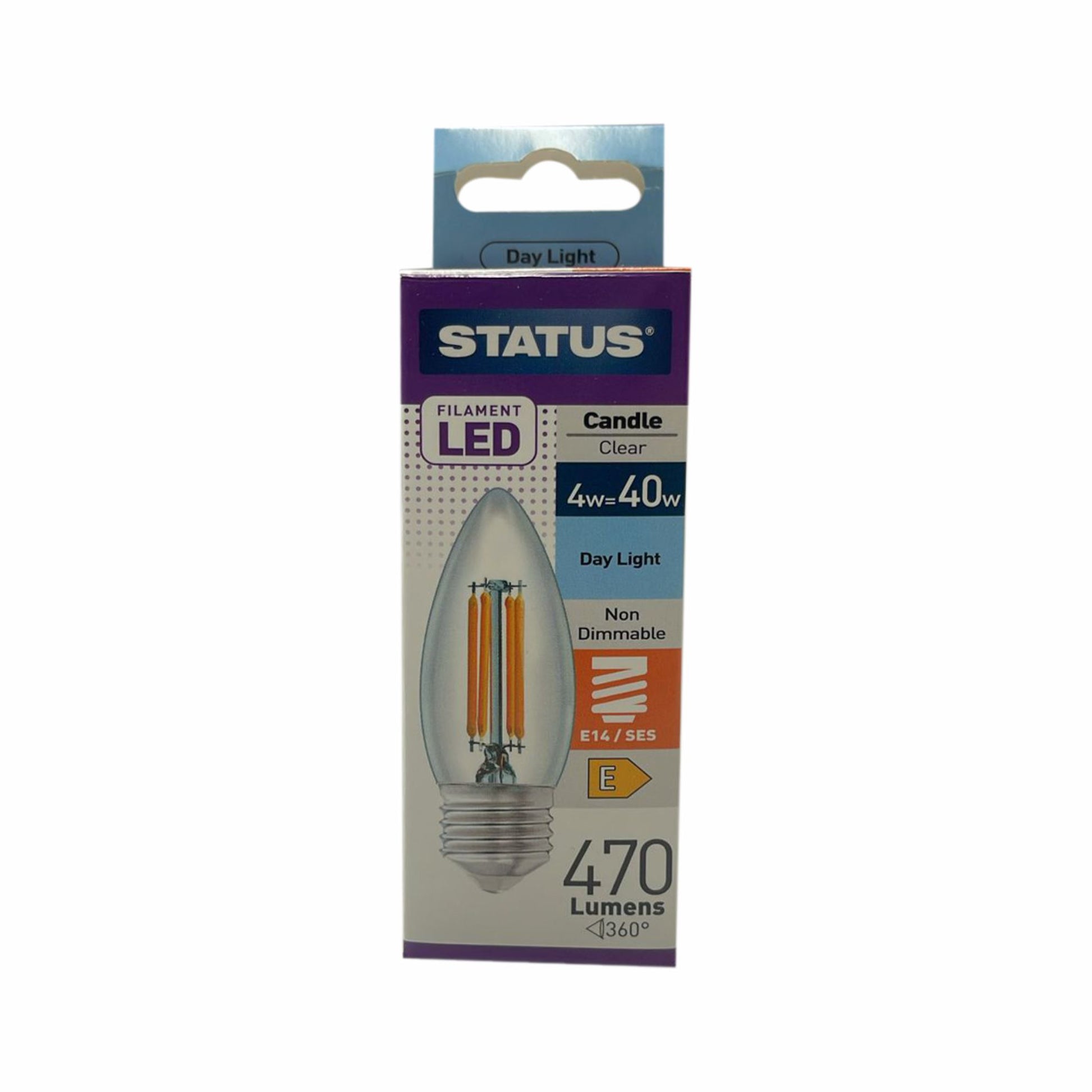 LED Candle Light a 4-watt power consumption, it provides the equivalent brightness of a traditional 40-watt and 470 lumens incandescent bulb. The bulb emits a daylight color temperature, ideal for creating a bright atmosphere in living rooms, dining areas, and hallways. Designed with an E14 Small Edison Screw (SES) fitting, it easily fits into a variety of chandeliers and wall sconces. This non-dimmable bulb offers a long lifespan.