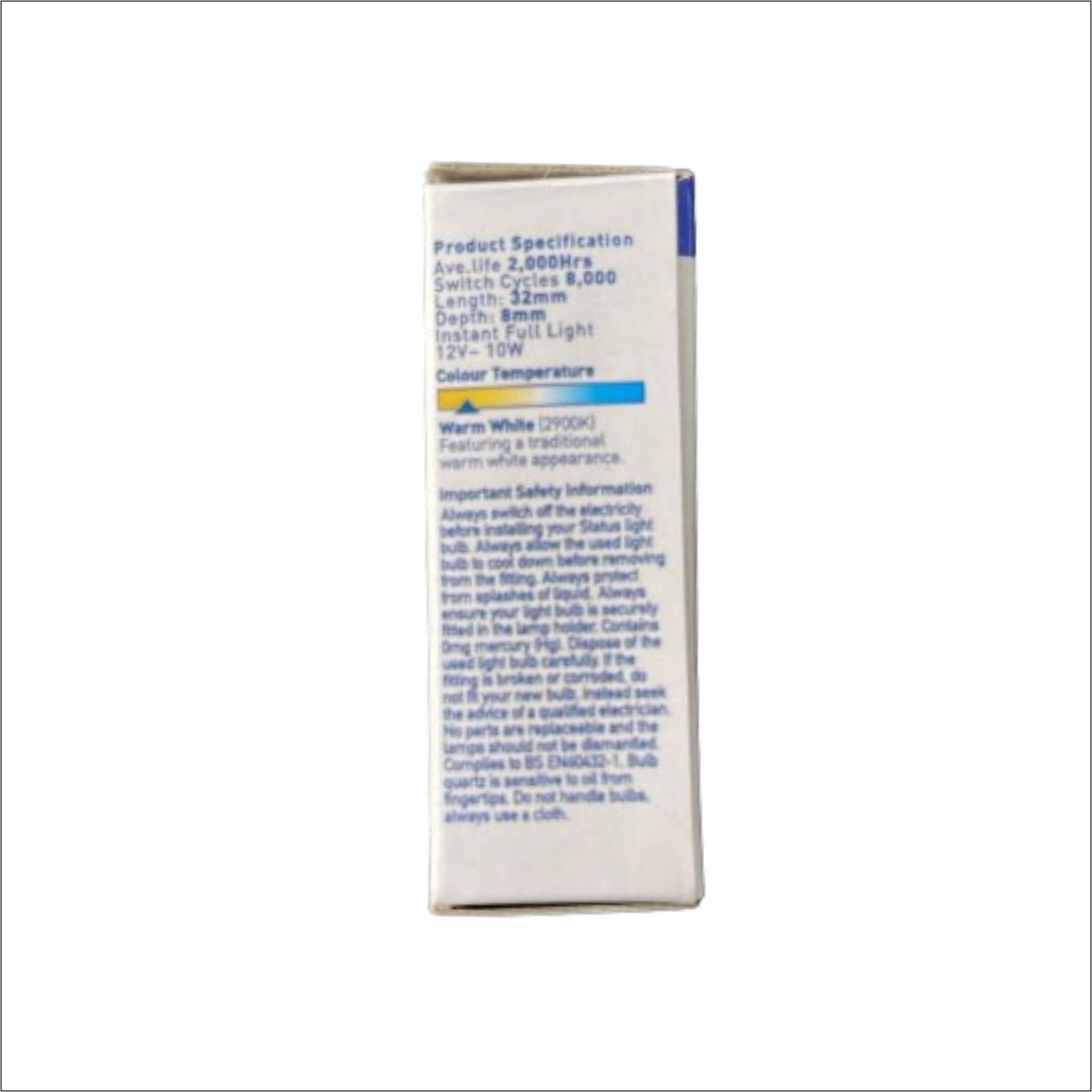 G4 10 Watt LED Capsule Bulb, 100 Lumens Warm White Light, Perfect for Commercial Use in Intricate or Decorative Fixtures G4 Cap Fitting pendant lights, and accent lamps. Warm White Light Such as kitchens, bathrooms and Dining Room. Dimmable With its long-lasting lifespan